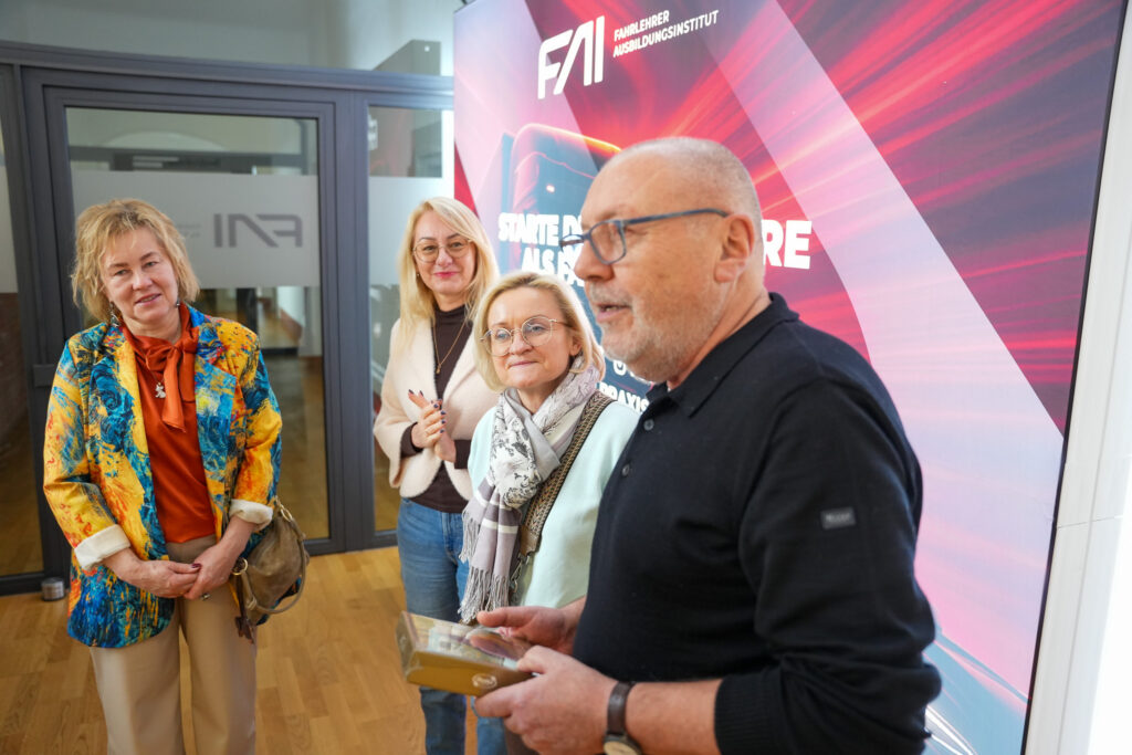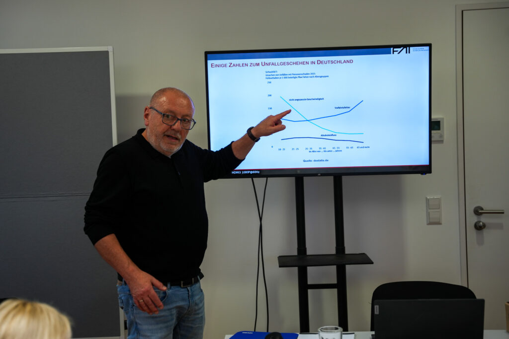 Štutgarte delegacija apsilankė moderniame instruktorių rengimo centre „FAI Fahrlehrer Ausbildungsinstitut eG“. Instituto vadovas Wolfgangas Fremgenas pristatė, kaip Vokietijoje 8–12 mėnesių rengiami instruktoriai, o rengimo programa apima platesnį spektrą kompetencijų: pedagogiką, metodiką, psichologiją, rizikingo elgesio analizę, praktinių situacijų vertinimą ir eismo saugos principus. Tokia mokymo struktūra leidžia nuosekliai formuoti aukštos kvalifikacijos specialistus, gebančius užtikrinti mokinių saugumą ir profesionalų rengimą.