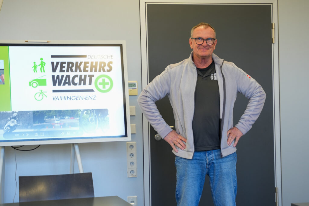 Nuotraukos kairėje – „Verkehrswacht Vaihingen“ instruktorius Jochenas Wengas (nuotr. K. Genučio).