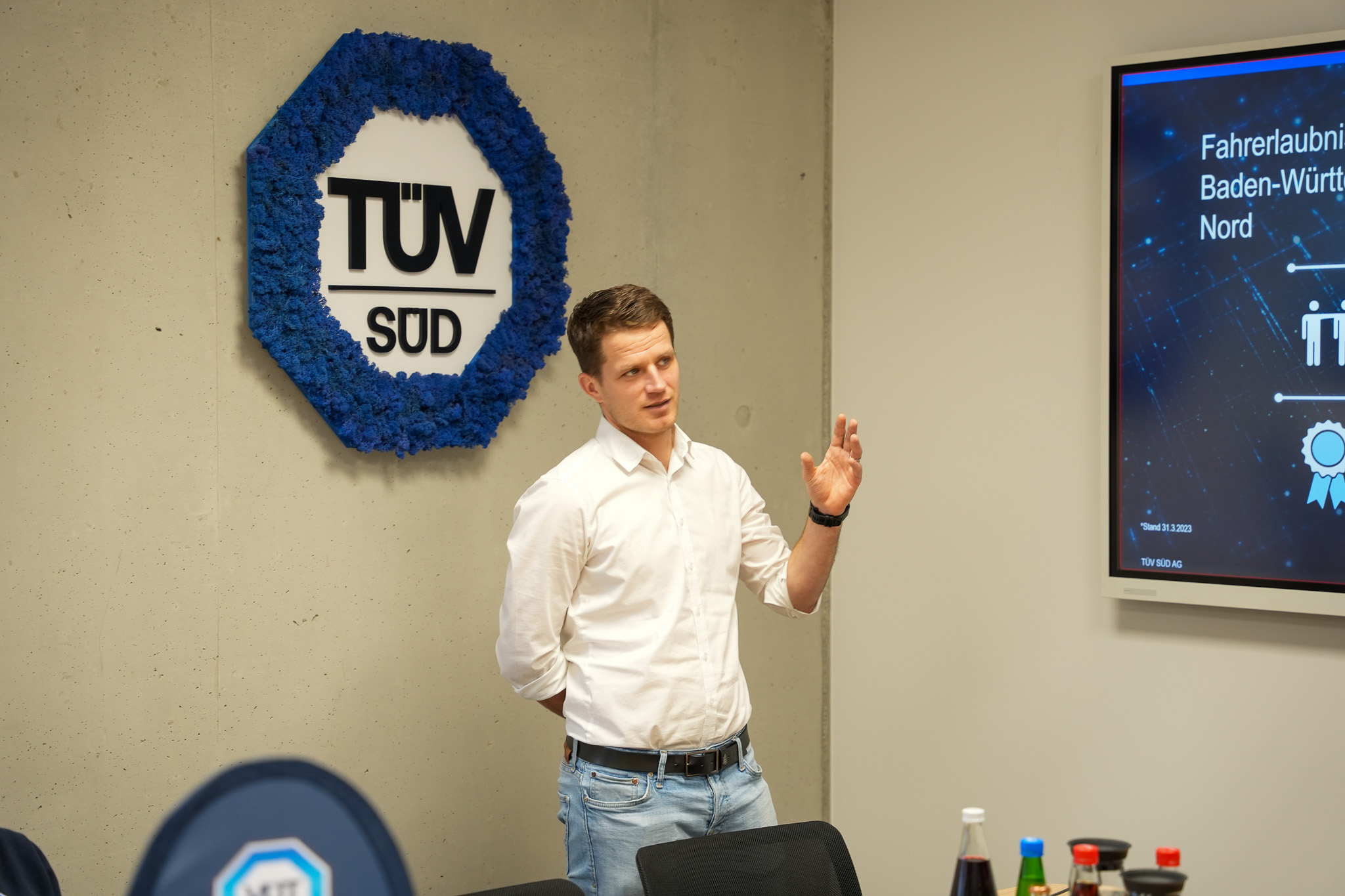 Vienas reikšmingiausių vizito etapų buvo apsilankymas vairuotojų egzaminavimo centre „TÜV SÜD Heilbronn“. Delegaciją priėmė šio centro vadovas Timo Hofmannas ir jo komanda. Jie pristatė teorijos ir praktikos egzaminų eigą bei kokybės kontrolės principus.